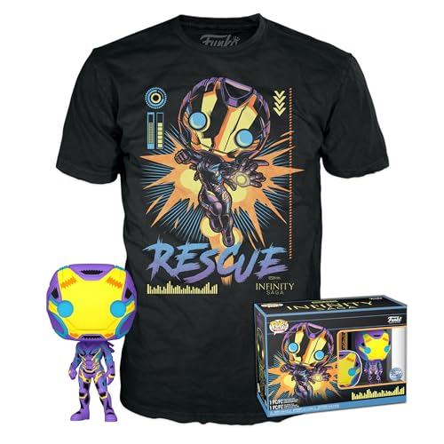 Funko Pop! & Tee: Marvel Blacklight - Rescue L - Large - (L) - T-Shirt - Kleidung mit Vinyl-Sammelfigur - Geschenkidee - Spielzeug und Kurzärmeliges Top Für Erwachsene Männer und Frauen