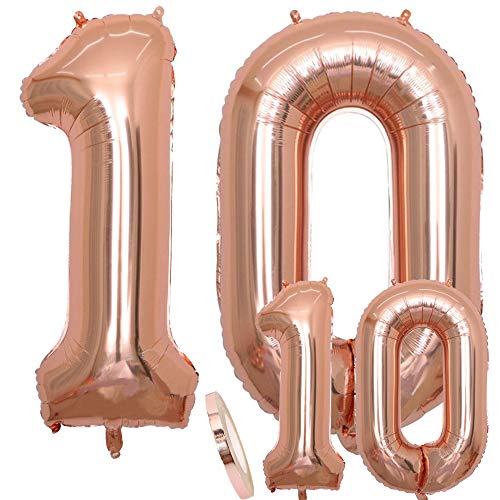Luftballons Zahl 10 Geburtstag XXL Rose Gold - Riesen Folienballon in 2 Größen 40" & 16" | Set XXL 100cm + Mini 40cm Version Geburtstagsdeko | Insgesamt Vier Zahlen | Ideal zum 10. als Deko