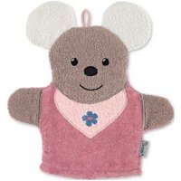 2 in 1: Waschhandschuh und Handpuppe Maus Mabel aus Frottee sorgen für einen riesen Waschspaß. 100 % Baumwolle Größe : 25 x 24 cm