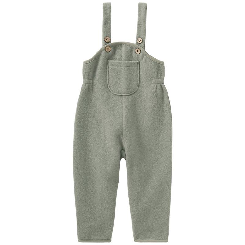 Nur das Beste für den kleinen Schatz! Salbeifarbene Latzhose aus Wolle mit Knöpfen in Holzoptik an den zweifach verstellbaren Trägern. Mit elastischen Einsätzen an den Seiten und einer aufgesetzten Brusttasche auf der Front. Großzügig geschnitten mit praktischen Umschlagbündchen an den Beinen, für optimalen Tragekomfort auch über mehreren Schichten Kleidung. Wollwalk ist ein langlebiger und strapazierfähiger Stoff, der durch kontrolliertes Verfilzen von Schurwollgewebe entsteht und besonders durch wärmende, temperaturausgleichende Eigenschaften überzeugt - in der Übergangszeit und an kälteren Wintertagen. Der Responsible Wool Standard (RWS) ist ein führender Standard zur Sicherstellung des Tierwohls über die gesamte Wertschöpfungskette.