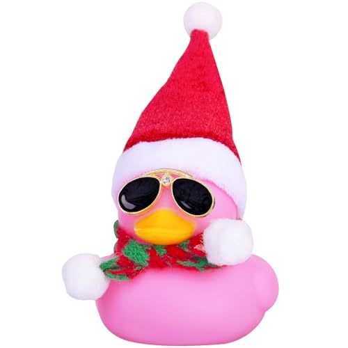 Mwmoeen Weihnachten Gummiente Autodekoration, Gelbe Quietscheente Duck Armaturenbrett Ornamente,EIN Weihnachtshut Schal Sonnenbrille tragenfür Weihnachtsdekoration Wohndekorationen für Erwachsene
