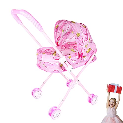 Abonda Puppenwagen, realistischer 2-in-1-Baby-Kinderwagen für Puppen, abnehmbarer Spielzeugwagen mit einziehbarem Baldachin und weichem Griff, langlebiges Babybett für Puppenspielzeug