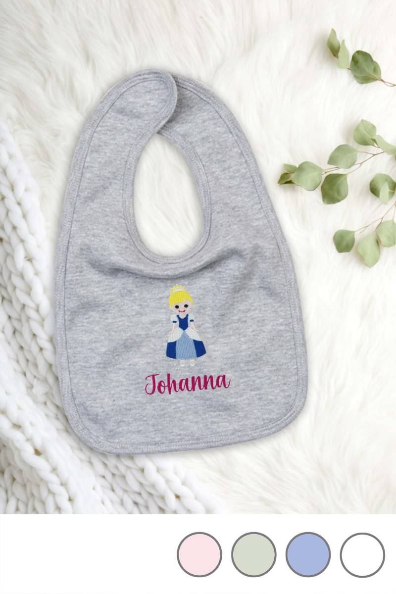 Lätzchen Für Babys Aus Bio-Baumwolle Bestickt Mit Prinzessin Und Wunschtext