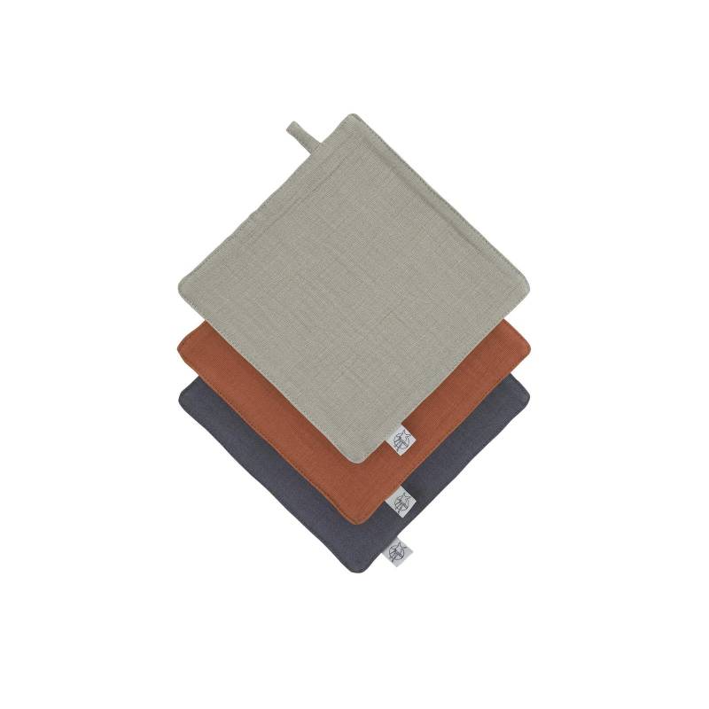 Lässig - Mull Waschlappen 3er Set, Oliv Rostrot Anthrazit (2)