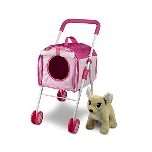 ANIVIA Haustier-Kinderwagen und Zubehör für Kinder im Alter von 3 bis 7 Jahren, Hundespielzeug für Kleinkinder, 2-teiliges Spielhunde-Set, Welpen-Party-Spielset mit 1 Haustier-Welpen inklusive, Rosa