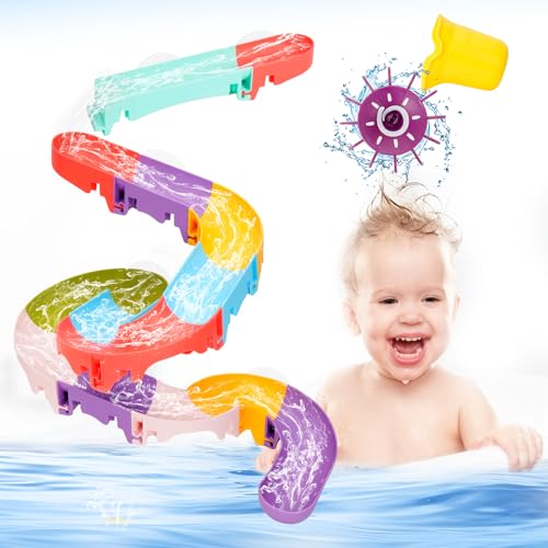 Badespielzeug für Kinder, Badewannenspielzeug ab 3 4 5 6 Jahre, DIY Kugelbahn Badewannen Spielzeug Wasserspielzeug Kinder, Badespielzeug mit Saugnäpfe, Badespaß Geschenk Mädchen Junge ab 3 (28Stück)
