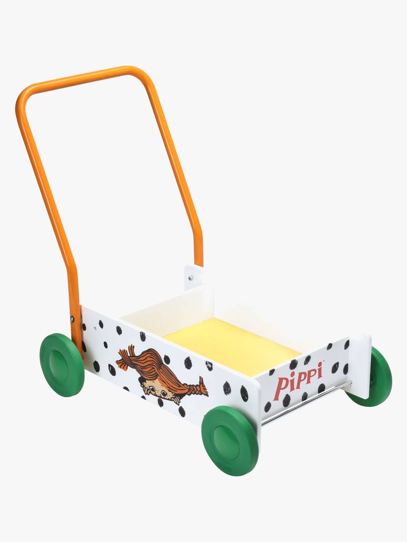 Schöner Lauflernwagen von Pippi Langstrumpf. Perfekt, wenn Dein Kind laufen lernt. - Bremsfunktion. - Stabil und robust. - Viel Stauraum. - CE-gekennzeichnet. - Altersempfehlung: ab 10 Monaten. - Holz, MDF.