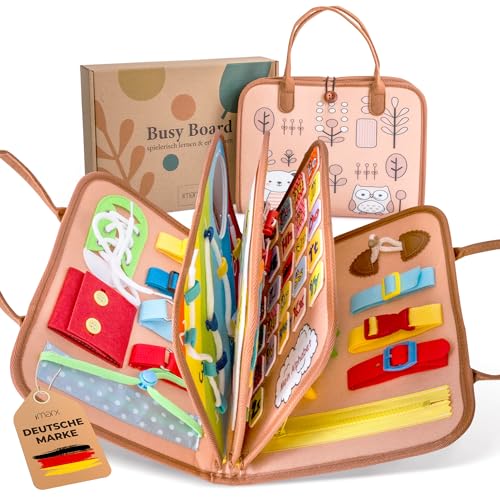 I-marx Montessori Busy Board – Motorikspielzeug ab 1 Jahr, Activity Board für Kleinkinder, faltbar & tragbar, ideales Reisespielzeug für unterwegs, fördert Motorik & Kreativität, Geschenkidee