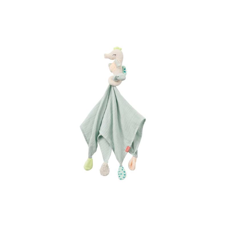 Das niedliche Seepferd mit Schmusetuch aus der Meereskinder Kollektion ist Einschlafhilfe und Kuschelfreund in einem. Der kleine Meeresbewohner liebt es zu Kuscheln und Schmusen und ist gerne Babys treue Begleitung zuhause und auf Reisen. Beim Einschlafen spendet das Baumwoll-Musselintuch Geborgenheit. Die kuschelweichen Materialien, das kleine Seepferd sowie die abgenähten Enden laden zum Greifen, Fühlen und Knuddeln ein, sodass das Schmusetuch mit Seepferd sicher bald nicht mehr aus der Hand gelassen wird. mit kleinem Seepferd & Baumwolle-Musselintuch für Babys und Kleinkinder ab 0+ Monaten Obermaterial: Velours, Musselin, Druckstoff / Füllung: 100% Polyester ideal als Geschenk zur Geburt, Taufe oder als Geburtstagsgeschenk für Babys und Kleinkinder Größe: 42 cm Altersempfehlung: 0+ Monate