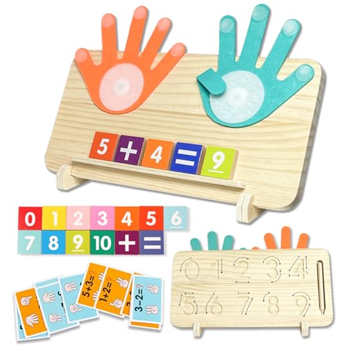 Golgner Holz Mathe Spielzeug Zahlen Lernen für Kinder, Fingerzähl Mathespielzeug, Zählen Lernspielzeug, Lehrhilfen Zahlen Montessori, für 3-6 Jahre Jungen und Mädchen Geschenk