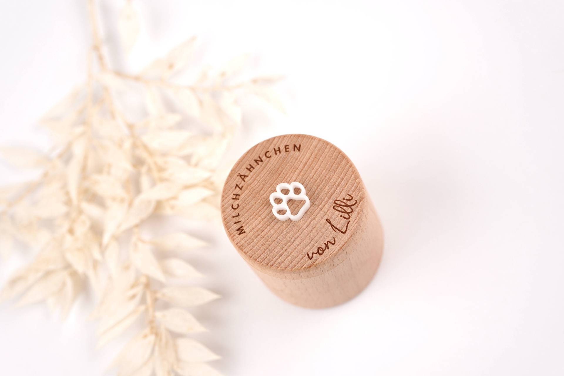 Zahndose Buche Handgefertigt - Motiv Pfote Personalisierte Aufbewahrungsbox Für Milchzähne Vom Hund