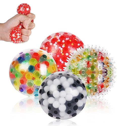 4PCS-6cm AXFEE Stress Balls für Kinder und Erwachsene (4 PCS), Squishy Balls mit Wasser Perle, Knautschball, Squeeze Ball zu entspannen, Konzentrieren, Dekomprimieren, Angst Relief