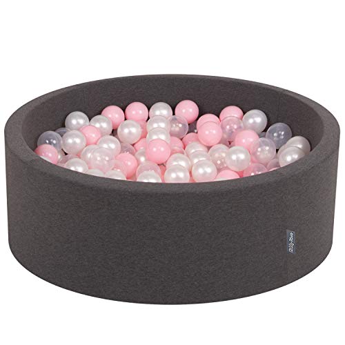 KiddyMoon Bällebad 90X30cm/300 Bälle ∅ 7Cm Bällepool Mit Bunten Bällen Für Babys Kinder Rund, Dunkelgrau:Rosa/Perle/Transparent