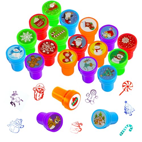 SHOWHEEL Selbstfärbende Stempel, 20 Stück Stempelset Weihnachten, Stempel Weihnachten Kinder, Kinder Stempel Weihnachten Kunststoff, Weihnachtsmann Schneemann Elch Stempelset