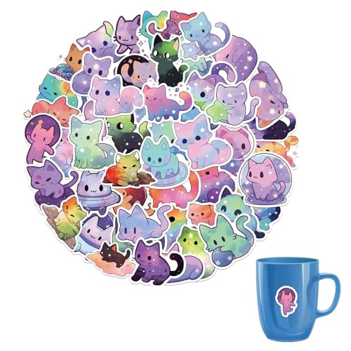 AONAYO 50 Blatt Kawaii Sticker Katzensticker,Cute Sticker Katzen Sticker,Wasserfest Und Kratzfest Ohne KlebstoffrüCkstäNde,Verwendbar FüR Computer,NotizbüCher,Koffer Etc Sticker Katzen