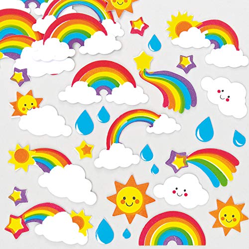 Baker Ross AF399 Regenbogen, bauschige Scrapbook-Aufkleber in lustigen Schaumstoffformen, Bastelmaterial für Schultüten, 120 Stück, sortiert, 8 cm - 6.5 cm