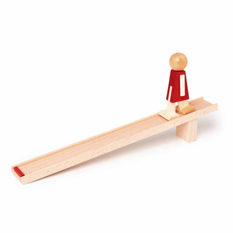 Für Kinder und Erwachsene ist es immer wieder faszinierend wie Nurmi ganz von selbst Schritt für Schritt die schräge Holzbahn hinunter läuft. Er nimmt dabei wie ein richtiger Läufer die Arme mit jedem Schritt mit.