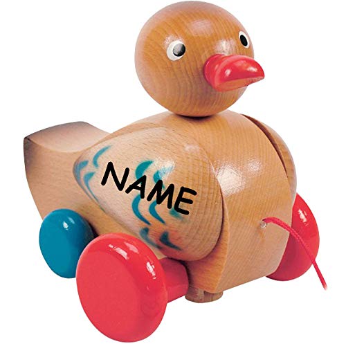 alles-meine.de GmbH Ziehtier - lustige Ente - incl. Name - aus Holz/Wackeltier - Flügel & Kopf wackelt - mit Schnur - Ziehfigur als Nachziehtier - Tier Holzfigur - zum Hint..