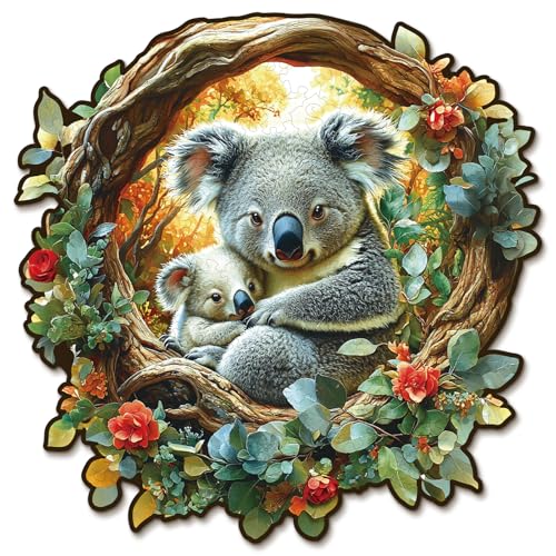 Holzpuzzle Erwachsene,KAAYEE 3D Eltern Koala Holz Puzzle Erwachsene,Unregelmäßige Einzigartige Puzzle,Einzigartige TierföRmige Holzpuzzles,Erwachsene mit Geschenkbox aus Holz