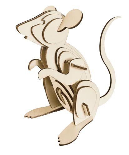 Pebaro 852/3 Holzbausatz Maus, 3D Puzzle, Modellbausatz, Basteln mit Holz, Holzpuzzle Tier, vorgestanzte Holzplatte, inkl. Schmirgelpapier, ausbrechen, zusammenstecken, fertig, Geschenkidee