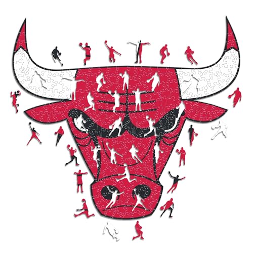 Iconic Puzzles - Chicago Bulls, Logo, Holzpuzzle, offiziell lizenziert von der NBA, 100% nachhaltig, Größe S, 150 Teile