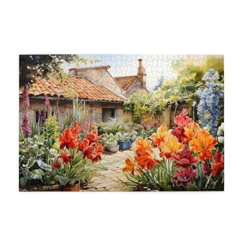 Mexpekil 1000 Teile Puzzles für Erwachsene Bauernhaus Blume Floral Landschaft Holzpuzzles Herausfordernde Puzzlespiele für Jugendliche Geschenke