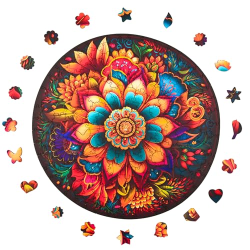 Charmante Grafik: Das Bild zeigt ein zauberhaftes Mandala aus Blumen und Blättern. Das Set enthält 20 Special Elements in Form von Tieren, Blumen und Objekten, die zum Thema des Bildes passen. Unregelmäßige Formen und Langlebigkeit: Die mit Lasertechnik präzisionsgeschnittenen Holzpuzzles bieten eine unvergleichliche Passform und Haltbarkeit. Mit unregelmäßigen Formen und dekorativ gewellten Kanten ist dieses Puzzle ein echter Leckerbissen für jeden Puzzle-Liebhaber. Dank der soliden Verarbeitung und des robusten Materials wird Ihnen das Puzzle viele Jahre lang Freude bereiten. Ästhetik und Raffinesse: Die ausdrucksstarken Farben des Bildes verleihen Schönheit und Tiefe. Die hochwertige Oberflächenbehandlung macht das Puzzle elegant und angenehm anzufassen. Die mitgelieferte selbstklebende Folie ermöglicht es, das fertige Kunstwerk auf der Rückseite zu befestigen und an der Wand zu präsentieren. Ein Genuss für den Ästheten: Die Serie "Peace & Harmony" ist Träumern, Schönheitssuchenden und Anhängern des spirituellen Ausdrucks gewidmet. Die 20 Elemente in Form von Tieren, Blumen und Gegenständen fügen sich perfekt in das Hauptbild ein und sorgen gleichzeitig für ein Element des Geheimnisses und der Überraschung. Ruhe und Gelassenheit: Dies ist kein gewöhnliches Puzzle. Die satten Farben in Kombination mit den einzigartigen Formen der einzelnen Elemente lassen Sie stundenlang in dieser Unterhaltung versinken und Entspannung und Ruhe finden., Hersteller: Z.P.Alexander