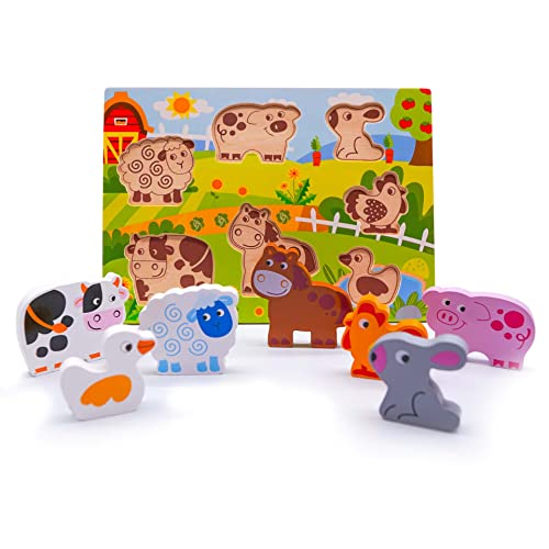 RB&G Holzpuzzle mit großen Teilen - Bauernhof Puzzle für Kinder ab 1 Jahr Hase & Co. Bausteine Spielsteine Tiere