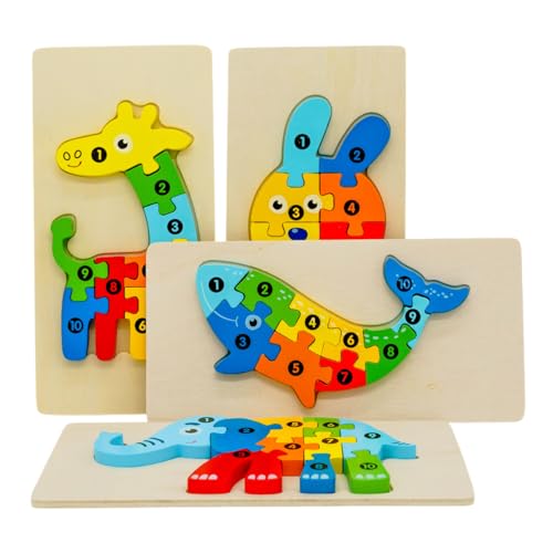 fundabär - Holzpuzzle für Kleinkinder (4er-Set) Pädagogisches Lernspielzeug mit Tiermotiven nach Montessori