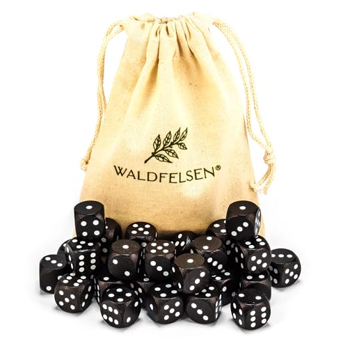 6, 12, 20, 30 oder 50 hochqualitative Holzwürfel aus echtem Buchenholz von Waldfelsen® Augenwürfel Spielwürfel aus Holz in 16 mm Standardwürfel mit Stoffbeutel Würfelset (Schwarz, 30 Stück)
