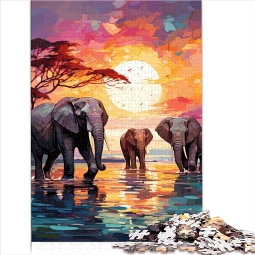 Lustige Puzzles 1000 Teile für Erwachsene Schwierige Puzzles Elefanten Afrika Sonnenuntergang Holzpuzzle für Erwachsene und Kinder Cartoon-Puzzle 1000 Teile (50 x 75 cm)