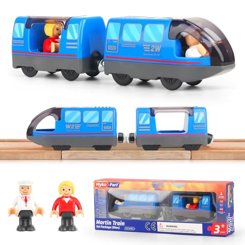 XEERUN Eisenbahn elektrische lok Holzeisenbahn Zug, Batteriebetriebenes Zugset, Batteriebetriebener Lokomotivzug, Leistungsstarker Motorzug, für Kinder Kompatibel mit Thomas, Blau