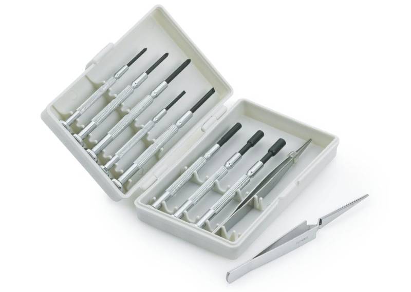 - Inhalt: je 1 Kreuzschlitz-Schraubendreher PH 00, PH 0 und PH 1. Je 1 Schlitz-Schraubendreher 2,0 mm und 3,0 mm. Je 1 Innensechskant-Schraubendreher 2,5 mm, 3,0 mm und 3,5 mm. 1 Pinzette und 1 Kreuzpinzette.