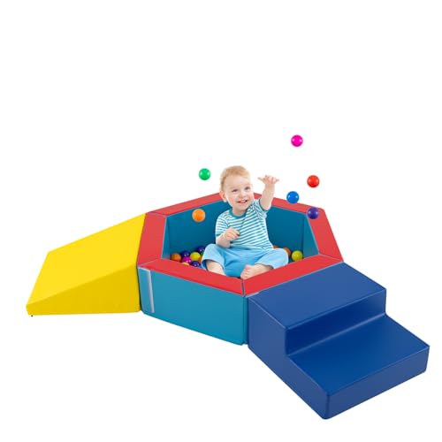 Unendliche Spielabenteuer - Die 3-teilige Softbausteine bietet verschiedene Formen und Spielmöglichkeiten. Sie erlaubt den Kindern, verschiedene Aktivitäten wie das Klettern auf eine Rampe, das Besteigen oder Hinabsteigen der Treppe, das Krabbeln durch den Tunnel, das Balancestange-Gehen und das Spielen mit Bällen zu erkunden. Hochwertige Materialien - Dieses Kinder Bällebad Set ist langlebig und besteht aus abriebfestem und farbecht bleibendem Kunstleder sowie aus weichem und stoßdämpfendem EPE-Schaum. Zudem ist es durch starke Nähte verstärkt, die stundenlang sicheres Spielen für Ihre Kleinen gewährleisten. Förderung des Wachstums Ihres Babys - Das Schaumstoffbausteine-Set ist aufregend und lehrreich, indem es wesentliche Entwicklungsfähigkeiten in einer spielerischen Umgebung fördert. Es unterstützt die Feinmotorik, Hand-Augen-Koordination, Farberkennung und räumliches Bewusstsein Ihres Kindes Vielseitiges & Einladendes Spielzeug - Verwandeln Sie jeden Raum in einen aufregenden Spielbereich – sei es zu Hause, im Kindergarten, im Frühförderzentrum oder im Vergnügungszentrum. Außerdem können Sie die Riesenbausteine nach Belieben kombinieren, um junge Geister in verschiedenen Szenarien zu fesseln. Ideal für aktive Kinder & einfache Wartung - Die modulare Kletterblock-Set ist eine perfekte Geschenkidee, die kreatives Spiel und Bildung vereint. Zudem bringen die 100 bunten Bälle zusätzlichen Spaß. Dank der glatten Reißverschlüsse lassen sich die Bezüge leicht abnehmen und reinigen., Hersteller: DREAMADE
