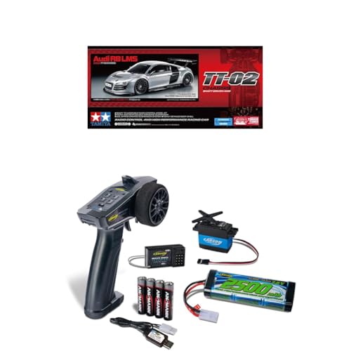 TAMIYA 58749 1:10 RC Audi R8 LMS 2008 TT-02 Bundle Komplettset Start- ferngesteuertes Auto, Fahrzeug, Modellbau, Zusammenbauen, Hobby, RC Bausatz