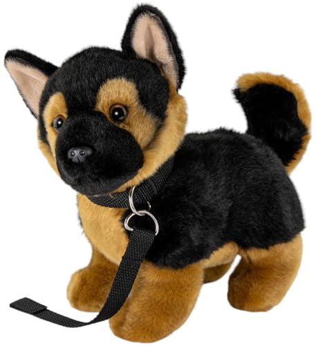 Qualitativ hochwertiger deutscher Schäferhund mit Hundeleine. Die Leine ist ca. 20cm lang. Englischer Name: German Shepherd Der Plüschhund steht und ist ca. 22cm lang. Die nach oben gerichtete Rute misst noch mal 10cm. Das Fell hat eine sehr angenehme Haptik. Ideal auch als Dekoration. Das Fell des Schäferhundes ist braun und am Rücken schwarz, was den Hund eine naturgetreue Optik verleiht. Die Farbe der Sicherheitsaugen ist braun. Empfohlen wird zur Pflege Handwäsche. Das Material des Plüschtiers ist schwer entflammbar, antiallergisch und nach höchsten Sicherheitsstandards gefertigt. Ein Produkt aus der Carl Dick Collection. Die traditionsreiche Marke ist seit über 30 Jahren erfolgreich am Markt und Spezialist für Kuscheltiere mit Firmensitz in Garmisch-Partenkirchen, Deutschland., Hersteller: Carl Dick