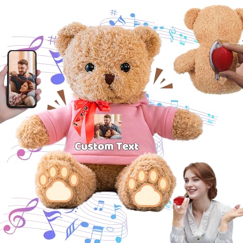 FAHOXUMR Personalisierte Geschenke Teddybär mit Aufzeichnung für Kinder Erwachsene, Personalisierte Bär Plüschtiere mit Schleife als Besondere Geschenke für Valentinstag Weihnachten (30cm-Text+Foto)