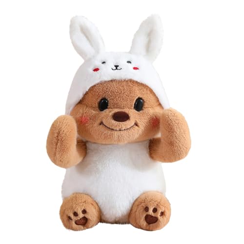 LICHENGTAI Plüschtier Bär mit Kaninchenmütze, Kawaii Bär Plüsch Stofftier Kuscheltier Ausgestopftes Spielzeug Stofftiere Plüschkissen Wurfkissen Geschenk für Kinder Mädchen Jungen