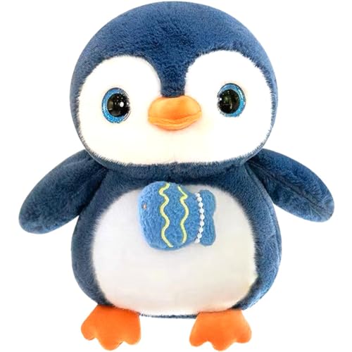 MOPQMKT Kuscheltier Pinguin Kawaii Plüschtier P-inguin mit Fisch Pinguin P-lüschtier für Kinder Plüschpinguin Geschenke für Jungen Mädchen Unisex Kinder P-inguin Kissen P-lüschtier (Blau 23cm)
