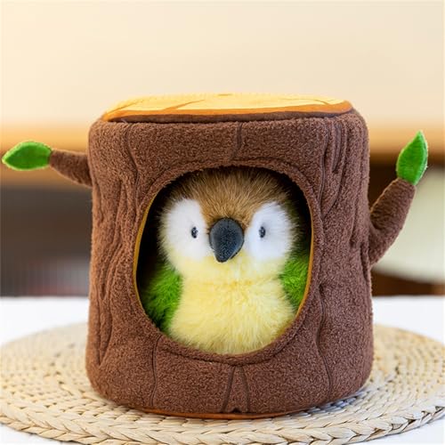 Ueiwffzo Plüschtier, Pelzige Vogel-Plüschpuppe, Niedlicher Kleiner Vogel Kuscheltier, Plüsch Spielzeug als Geschenk für Ihre Freunde (A 12cm+Baumlöcher)