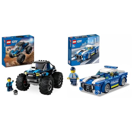 LEGO City Blauer Monstertruck, Offroad-Auto-Spielzeug, Fahrzeug-Set & City Polizeiauto, Polizei-Spielzeug ab 5 Jahren