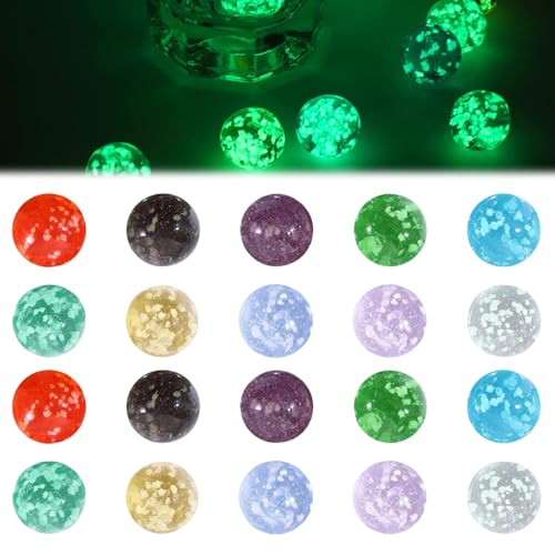 NATOSU 20 Stück Glasmurmeln Superhelle Murmeln Leuchten im Dunkeln Murmeln Kinder, Bunte Glasmurmeln für Murmelspiel Kinder, Marmorbahn-Spiel, Heimdekoration