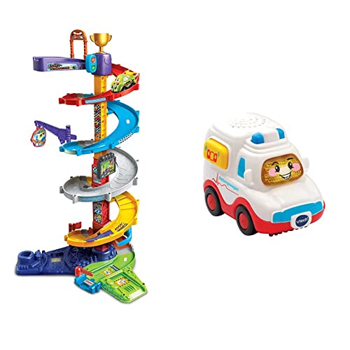 Vtech TUT TUT Baby Flitzer - 2-in-1 Turboturm 1-5 Jahren & TUT TUT Baby Flitzer - Rettungswagen – Spielzeugauto mit Musik, aufleuchtender Taste, spannenden Sätzen und Geräuschen