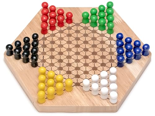 Natureich Holz Halma Spielzeug mit Spielfiguren/Montessori Spiel zur Entwicklung der Logik & Lernen von Abläufen und Formen Gross Natur Senioren & Kinder ab 5 Jahre bunt XXL