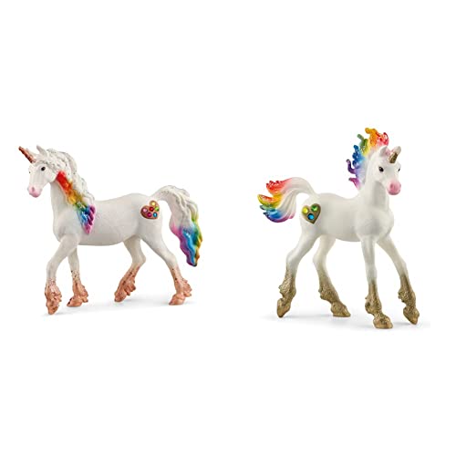 SCHLEICH 70726 Spielfigur -Regenbogeneinhorn, Stute bayala, Mehrfarbig & 70727 Spielfigur -Regenbogeneinhorn, Fohlen bayala Mehrfarbig