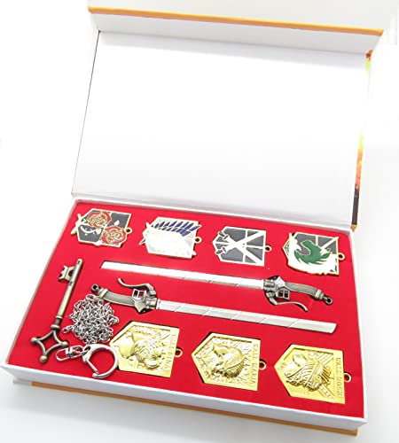 Wappen Sammelbox für Angriff auf Titan Fans,Größe des Sammelbox: 21*13*3 cm 10 Anhänger: wappen von des Aufklärungstrupp, der Militärpolizei, der Mauergarnison und der Trainingseinheit, Wall Maria. Wall Rose, Wall Sina, ca. 40* 30mm, 1* Schlüssel ca. 67* 23mm, 2* Schwertformanhänger: 155* 20 mm Ideale Geschenk für AOT Fans, Hersteller: Multiculture