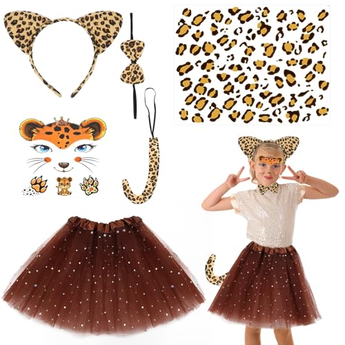 BOARDFEB Leoparden Kostüm Damen, 8 Stück Leoparden Kostüm Kinder Leopard Tattoo Gesicht Leoparden Ohren Leoparden Kostüm für Karnevals Mottoparty Cosplay Partykostüme