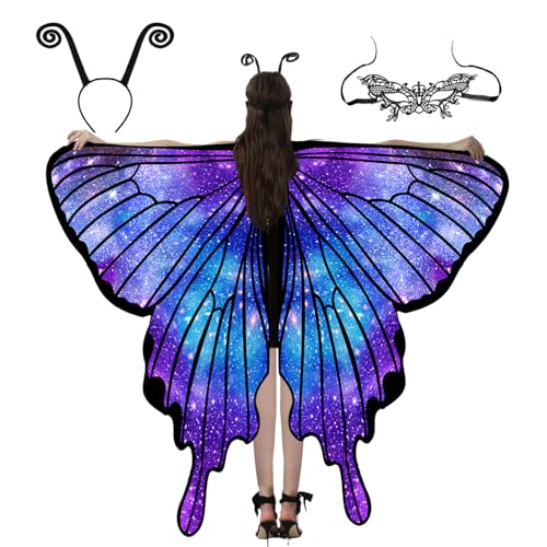 Huanuoda Schmetterling Kostüm Damen,Karneval Kostüm,Schmetterling Umhang Schal,halloween kostüm damen,Fasching Kostüm Mit Maske Stirnband,Fee Kostüm für Cosplay Karneval Halloween Weihnachte (Blau)