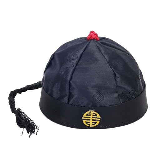 rockible Chinesischer orientalischer Hut, chinesischer Kaiserhut mit Pferdeschwanz, Party-Cosplay-Kappe für Theater, Schwarz 54cm