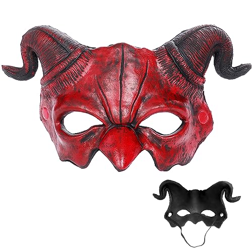 【Hochwertiges Material】Die Halloween Maske besteht aus weichem und leichtem PU-Schaum mit guter Elastizität, wasserdichter und Wärmeisolierung, geringem Gewicht, sicher und umweltfreundlich, bequem und atmungsaktiv. 【Half Face Design】 Das halbgesichtete Design beeinträchtigt die Atmung nicht, und die großen Augenlöcher nehmen überhaupt keine periphere Sicht weg. Die Form passt sich dem Gesicht bequem an und ist stundenlang angenehm zu tragen. 【Realistisches Design】 Schrecklicher Halloween Maske Kopfschmuck und gruselige Satanshörner, ist eine ausgefallene und neuartige Halbgesichts maske. 【Verstellbares Band】Halloween Maske ist mit einem verstellbaren Gummiband ausgestattet, um den meisten Menschen zu passen. 【Viele Anlässe】Perfekt für Halloween, Aprilscherz, Ostern, Weihnachten, Karneval, Maskenparty, Nachtclub, Fotoshooting usw., Hersteller: JAHEMU